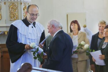 Liptovský Ján 17. 6. 2018 – Štyridsaťdeväť konfirmandov stálo pred jánskym oltárom pred päťdesiatimi rokmi, v roku 1968. Bolo to veru najviac, čo vieme zistiť z našej konfirmačnej matriky. Žiaľ, už dvanásť z nich si Pán povolal z tejto časnosti. Zo žijúcich prišlo šestnásť jubilantov, ktorí si pri slávnosti zlatej konfirmácie zaspomínali nielen na samotnú slávnosť, ale i na prežitých päťdesiat rokov. Spoločne prijali aj sviatosť Večere Pánovej. Po slávnosti navštívili hrob seniora Juraja Lukáča a učiteľa Eduarda Grečnera. Slávnosť zakončili spoločným obedom.